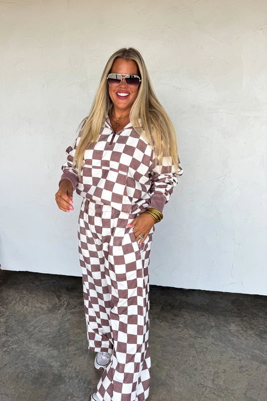 Easy Does It Pullover Hoodie (Brown Checker)