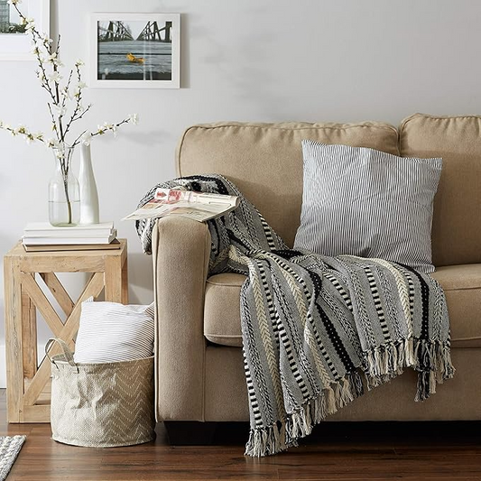 Farmhouse Fringed Throw Blanket (Multiple Colors)