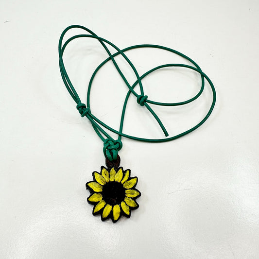 Handmade Walnut Sunflower Pendant with Leather Strap