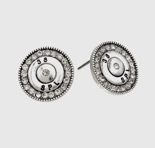38 Spl Bullet Shell Rhinestone Stud Earrings