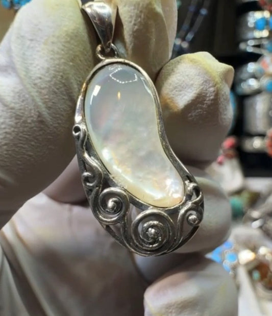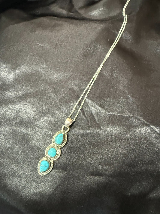 Sterling Silver, Turquoise and spiny shell Pendant & 20" chain