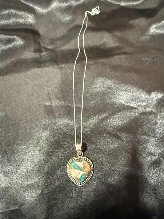Turquoise Spiny Oyster Heart Pendant & Chain