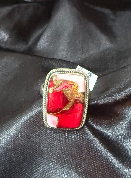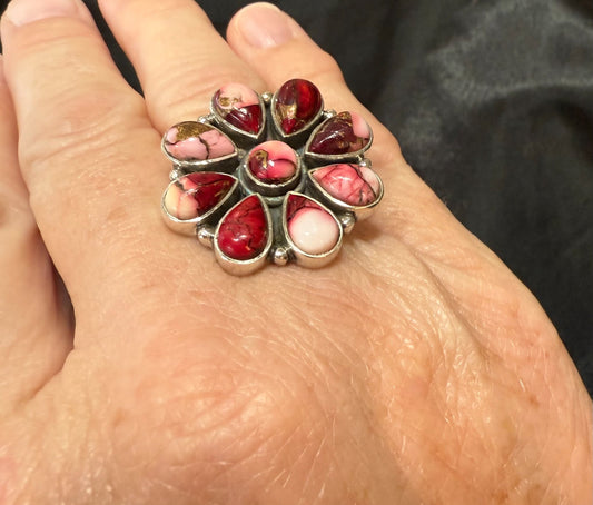 Double Stone Turquoise Spiny Oyster Ring, Size 8